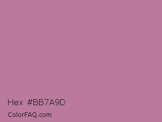 Hex #bb7a9d Color is a light rose color and the nearest color is English Lavender #b48395. Hex code #bb7a9d and RGB value is rgb(187,122,157). In RGB color space, this color is composed of 73% red, 48% green, 62% blue, In CMYK color space, this color is composed of 0% cyan, 35% magenta, 16% yellow , 27% black , In HSL color space, this color has a hue angle of 328° , 32% saturation and 61% lightness.