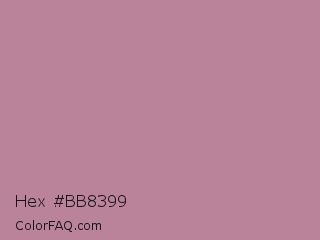 Hex #bb8399 Color is a light rose color and the nearest color is English Lavender #b48395. Hex code #bb8399 and RGB value is rgb(187,131,153). In RGB color space, this color is composed of 73% red, 51% green, 60% blue, In CMYK color space, this color is composed of 0% cyan, 30% magenta, 18% yellow , 27% black , In HSL color space, this color has a hue angle of 336° , 29% saturation and 62% lightness.
