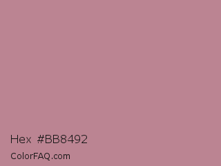 Hex #bb8492 Color is a light red color and the nearest color is English Lavender #b48395. Hex code #bb8492 and RGB value is rgb(187,132,146). In RGB color space, this color is composed of 73% red, 52% green, 57% blue, In CMYK color space, this color is composed of 0% cyan, 29% magenta, 22% yellow , 27% black , In HSL color space, this color has a hue angle of 345° , 29% saturation and 63% lightness.