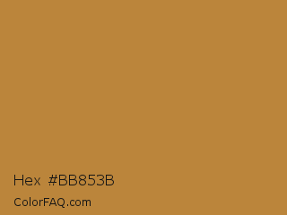 Hex #bb853b Color is a normal orange color and the nearest color is Peru #cd853f. Hex code #bb853b and RGB value is rgb(187,133,59). In RGB color space, this color is composed of 73% red, 52% green, 23% blue, In CMYK color space, this color is composed of 0% cyan, 29% magenta, 68% yellow , 27% black , In HSL color space, this color has a hue angle of 35° , 52% saturation and 48% lightness.