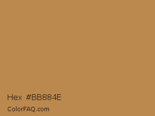 Hex #bb884e Color is a normal orange color and the nearest color is Deer #ba8759. Hex code #bb884e and RGB value is rgb(187,136,78). In RGB color space, this color is composed of 73% red, 53% green, 31% blue, In CMYK color space, this color is composed of 0% cyan, 27% magenta, 58% yellow , 27% black , In HSL color space, this color has a hue angle of 32° , 44% saturation and 52% lightness.