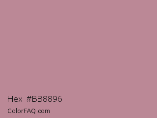 Hex #bb8896 Color is a light rose color and the nearest color is English Lavender #b48395. Hex code #bb8896 and RGB value is rgb(187,136,150). In RGB color space, this color is composed of 73% red, 53% green, 59% blue, In CMYK color space, this color is composed of 0% cyan, 27% magenta, 20% yellow , 27% black , In HSL color space, this color has a hue angle of 344° , 27% saturation and 63% lightness.