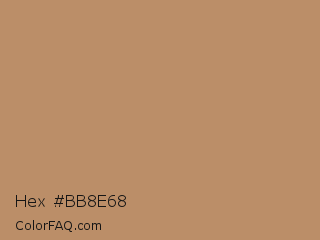 Hex #bb8e68 Color is a normal orange color and the nearest color is Light Taupe #b38b6d. Hex code #bb8e68 and RGB value is rgb(187,142,104). In RGB color space, this color is composed of 73% red, 56% green, 41% blue, In CMYK color space, this color is composed of 0% cyan, 24% magenta, 44% yellow , 27% black , In HSL color space, this color has a hue angle of 27° , 38% saturation and 57% lightness.