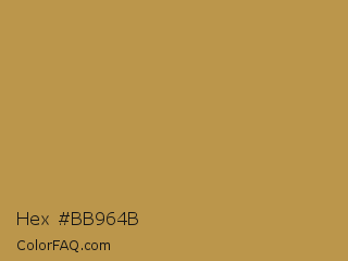 Hex #bb964b Color is a normal orange color and the nearest color is Tussock #c5994b. Hex code #bb964b and RGB value is rgb(187,150,75). In RGB color space, this color is composed of 73% red, 59% green, 29% blue, In CMYK color space, this color is composed of 0% cyan, 20% magenta, 60% yellow , 27% black , In HSL color space, this color has a hue angle of 40° , 45% saturation and 51% lightness.