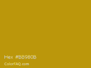 Hex #bb980b Color is a normal yellow color and the nearest color is Buddha Gold #c1a004. Hex code #bb980b and RGB value is rgb(187,152,11). In RGB color space, this color is composed of 73% red, 60% green, 4% blue, In CMYK color space, this color is composed of 0% cyan, 19% magenta, 94% yellow , 27% black , In HSL color space, this color has a hue angle of 48° , 89% saturation and 39% lightness.