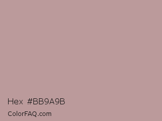 Hex #bb9a9b Color is a light red color and the nearest color is Tuscany #c09999. Hex code #bb9a9b and RGB value is rgb(187,154,155). In RGB color space, this color is composed of 73% red, 60% green, 61% blue, In CMYK color space, this color is composed of 0% cyan, 18% magenta, 17% yellow , 27% black , In HSL color space, this color has a hue angle of 358° , 20% saturation and 67% lightness.