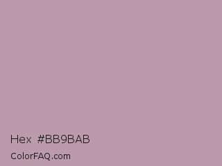 Hex #bb9bab Color is a light rose color and the nearest color is Pastel Purple #b39eb5. Hex code #bb9bab and RGB value is rgb(187,155,171). In RGB color space, this color is composed of 73% red, 61% green, 67% blue, In CMYK color space, this color is composed of 0% cyan, 17% magenta, 9% yellow , 27% black , In HSL color space, this color has a hue angle of 330° , 19% saturation and 67% lightness.