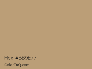 Hex #bb9e77 Color is a normal orange color and the nearest color is Pale Taupe #bc987e. Hex code #bb9e77 and RGB value is rgb(187,158,119). In RGB color space, this color is composed of 73% red, 62% green, 47% blue, In CMYK color space, this color is composed of 0% cyan, 16% magenta, 36% yellow , 27% black , In HSL color space, this color has a hue angle of 34° , 33% saturation and 60% lightness.