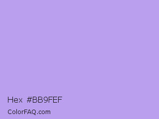 Hex #bb9fef Color is a light violet color and the nearest color is Biloba Flower #b2a1ea. Hex code #bb9fef and RGB value is rgb(187,159,239). In RGB color space, this color is composed of 73% red, 62% green, 94% blue, In CMYK color space, this color is composed of 22% cyan, 33% magenta, 0% yellow , 6% black , In HSL color space, this color has a hue angle of 261° , 71% saturation and 78% lightness.