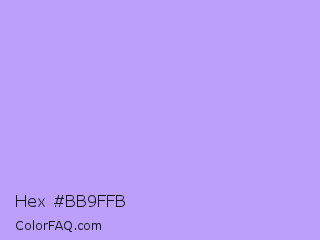Hex #bb9ffb Color is a light indigo color and the nearest color is Pale Violet #cc99ff. Hex code #bb9ffb and RGB value is rgb(187,159,251). In RGB color space, this color is composed of 73% red, 62% green, 98% blue, In CMYK color space, this color is composed of 25% cyan, 37% magenta, 0% yellow , 2% black , In HSL color space, this color has a hue angle of 258° , 92% saturation and 80% lightness.