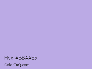 Hex #bbaae5 Color is a light indigo color and the nearest color is Biloba Flower #b2a1ea. Hex code #bbaae5 and RGB value is rgb(187,170,229). In RGB color space, this color is composed of 73% red, 67% green, 90% blue, In CMYK color space, this color is composed of 18% cyan, 26% magenta, 0% yellow , 10% black , In HSL color space, this color has a hue angle of 257° , 53% saturation and 78% lightness.