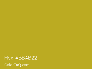 Hex #bbab22 Color is a normal yellow color and the nearest color is Hokey Pokey #c8a528. Hex code #bbab22 and RGB value is rgb(187,171,34). In RGB color space, this color is composed of 73% red, 67% green, 13% blue, In CMYK color space, this color is composed of 0% cyan, 9% magenta, 82% yellow , 27% black , In HSL color space, this color has a hue angle of 54° , 69% saturation and 43% lightness.