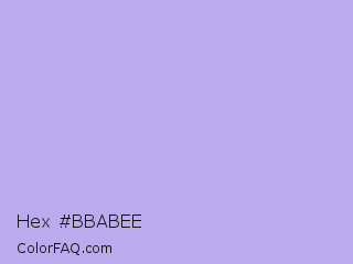 Hex #bbabee Color is a light indigo color and the nearest color is Biloba Flower #b2a1ea. Hex code #bbabee and RGB value is rgb(187,171,238). In RGB color space, this color is composed of 73% red, 67% green, 93% blue, In CMYK color space, this color is composed of 21% cyan, 28% magenta, 0% yellow , 7% black , In HSL color space, this color has a hue angle of 254° , 66% saturation and 80% lightness.