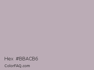 Hex #bbacb6 Color is a light magenta color and the nearest color is Black Shadows #bfafb2. Hex code #bbacb6 and RGB value is rgb(187,172,182). In RGB color space, this color is composed of 73% red, 67% green, 71% blue, In CMYK color space, this color is composed of 0% cyan, 8% magenta, 3% yellow , 27% black , In HSL color space, this color has a hue angle of 320° , 10% saturation and 70% lightness.