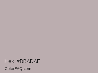 Hex #bbadaf Color is a light red color and the nearest color is Black Shadows #bfafb2. Hex code #bbadaf and RGB value is rgb(187,173,175). In RGB color space, this color is composed of 73% red, 68% green, 69% blue, In CMYK color space, this color is composed of 0% cyan, 7% magenta, 6% yellow , 27% black , In HSL color space, this color has a hue angle of 351° , 9% saturation and 71% lightness.