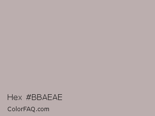Hex #bbaeae Color is a light red color and the nearest color is Black Shadows #bfafb2. Hex code #bbaeae and RGB value is rgb(187,174,174). In RGB color space, this color is composed of 73% red, 68% green, 68% blue, In CMYK color space, this color is composed of 0% cyan, 7% magenta, 7% yellow , 27% black , In HSL color space, this color has a hue angle of 0° , 9% saturation and 71% lightness.