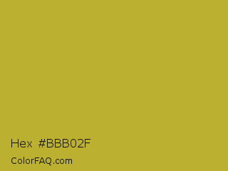 Hex #bbb02f Color is a normal yellow color and the nearest color is Hokey Pokey #c8a528. Hex code #bbb02f and RGB value is rgb(187,176,47). In RGB color space, this color is composed of 73% red, 69% green, 18% blue, In CMYK color space, this color is composed of 0% cyan, 6% magenta, 75% yellow , 27% black , In HSL color space, this color has a hue angle of 55° , 60% saturation and 46% lightness.