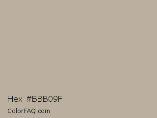 Hex #bbb09f Color is a light orange color and the nearest color is Nomad #bab1a2. Hex code #bbb09f and RGB value is rgb(187,176,159). In RGB color space, this color is composed of 73% red, 69% green, 62% blue, In CMYK color space, this color is composed of 0% cyan, 6% magenta, 15% yellow , 27% black , In HSL color space, this color has a hue angle of 36° , 17% saturation and 68% lightness.