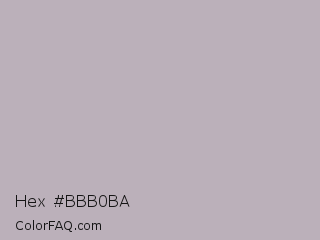Hex #bbb0ba Color is a light magenta color and the nearest color is Pink Swan #beb5b7. Hex code #bbb0ba and RGB value is rgb(187,176,186). In RGB color space, this color is composed of 73% red, 69% green, 73% blue, In CMYK color space, this color is composed of 0% cyan, 6% magenta, 1% yellow , 27% black , In HSL color space, this color has a hue angle of 305° , 7% saturation and 71% lightness.