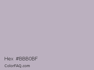 Hex #bbb0bf Color is a light purple color and the nearest color is Chatelle #bdb3c7. Hex code #bbb0bf and RGB value is rgb(187,176,191). In RGB color space, this color is composed of 73% red, 69% green, 75% blue, In CMYK color space, this color is composed of 2% cyan, 8% magenta, 0% yellow , 25% black , In HSL color space, this color has a hue angle of 284° , 10% saturation and 72% lightness.