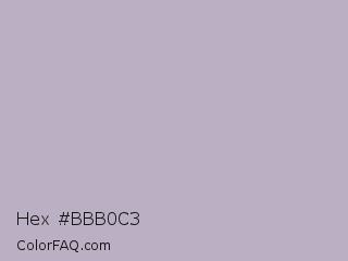 Hex #bbb0c3 Color is a light purple color and the nearest color is Chatelle #bdb3c7. Hex code #bbb0c3 and RGB value is rgb(187,176,195). In RGB color space, this color is composed of 73% red, 69% green, 76% blue, In CMYK color space, this color is composed of 4% cyan, 10% magenta, 0% yellow , 24% black , In HSL color space, this color has a hue angle of 275° , 14% saturation and 73% lightness.