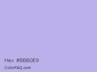 Hex #bbb0e9 Color is a light indigo color and the nearest color is Maximum Blue Purple #acace6. Hex code #bbb0e9 and RGB value is rgb(187,176,233). In RGB color space, this color is composed of 73% red, 69% green, 91% blue, In CMYK color space, this color is composed of 20% cyan, 24% magenta, 0% yellow , 9% black , In HSL color space, this color has a hue angle of 252° , 56% saturation and 80% lightness.
