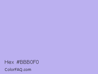 Hex #bbb0f0 Color is a very light indigo color and the nearest color is Maximum Blue Purple #acace6. Hex code #bbb0f0 and RGB value is rgb(187,176,240). In RGB color space, this color is composed of 73% red, 69% green, 94% blue, In CMYK color space, this color is composed of 22% cyan, 27% magenta, 0% yellow , 6% black , In HSL color space, this color has a hue angle of 250° , 68% saturation and 82% lightness.