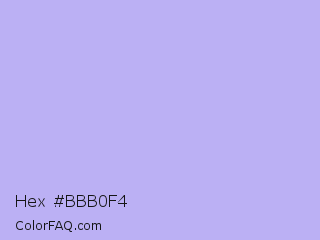 Hex #bbb0f4 Color is a very light indigo color and the nearest color is Biloba Flower #b2a1ea. Hex code #bbb0f4 and RGB value is rgb(187,176,244). In RGB color space, this color is composed of 73% red, 69% green, 96% blue, In CMYK color space, this color is composed of 23% cyan, 28% magenta, 0% yellow , 4% black , In HSL color space, this color has a hue angle of 250° , 76% saturation and 82% lightness.