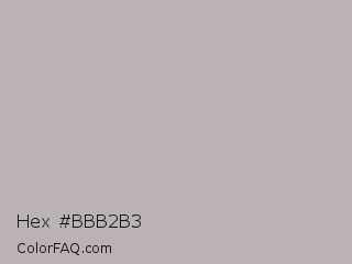 Hex #bbb2b3 Color is a light red color and the nearest color is Nobel #b7b1b1. Hex code #bbb2b3 and RGB value is rgb(187,178,179). In RGB color space, this color is composed of 73% red, 70% green, 70% blue, In CMYK color space, this color is composed of 0% cyan, 5% magenta, 4% yellow , 27% black , In HSL color space, this color has a hue angle of 353° , 6% saturation and 72% lightness.
