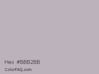 Hex #bbb2bb Color is a light magenta color and the nearest color is Pink Swan #beb5b7. Hex code #bbb2bb and RGB value is rgb(187,178,187). In RGB color space, this color is composed of 73% red, 70% green, 73% blue, In CMYK color space, this color is composed of 0% cyan, 5% magenta, 0% yellow , 27% black , In HSL color space, this color has a hue angle of 300° , 6% saturation and 72% lightness.