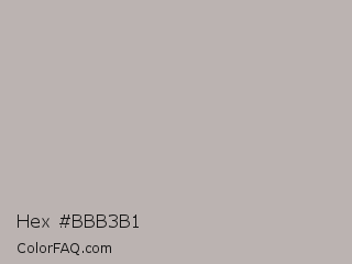 Hex #bbb3b1 Color is a light red color and the nearest color is Nobel #b7b1b1. Hex code #bbb3b1 and RGB value is rgb(187,179,177). In RGB color space, this color is composed of 73% red, 70% green, 69% blue, In CMYK color space, this color is composed of 0% cyan, 4% magenta, 5% yellow , 27% black , In HSL color space, this color has a hue angle of 12° , 7% saturation and 71% lightness.
