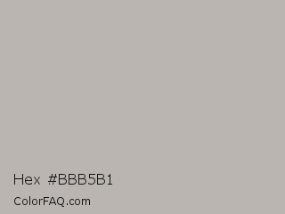 Hex #bbb5b1 Color is a light orange color and the nearest color is Tide #bfb8b0. Hex code #bbb5b1 and RGB value is rgb(187,181,177). In RGB color space, this color is composed of 73% red, 71% green, 69% blue, In CMYK color space, this color is composed of 0% cyan, 3% magenta, 5% yellow , 27% black , In HSL color space, this color has a hue angle of 24° , 7% saturation and 71% lightness.