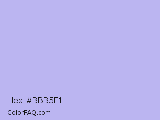 Hex #bbb5f1 Color is a very light indigo color and the nearest color is Perano #a9bef2. Hex code #bbb5f1 and RGB value is rgb(187,181,241). In RGB color space, this color is composed of 73% red, 71% green, 95% blue, In CMYK color space, this color is composed of 22% cyan, 25% magenta, 0% yellow , 5% black , In HSL color space, this color has a hue angle of 246° , 68% saturation and 83% lightness.