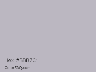 Hex #bbb7c1 Color is a light violet color and the nearest color is Chatelle #bdb3c7. Hex code #bbb7c1 and RGB value is rgb(187,183,193). In RGB color space, this color is composed of 73% red, 72% green, 76% blue, In CMYK color space, this color is composed of 3% cyan, 5% magenta, 0% yellow , 24% black , In HSL color space, this color has a hue angle of 264° , 7% saturation and 74% lightness.