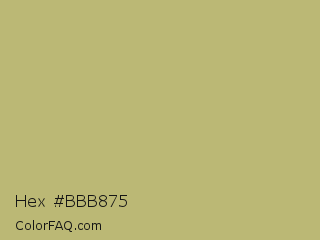 Hex #bbb875 Color is a normal yellow color and the nearest color is Misty Moss #bbb477. Hex code #bbb875 and RGB value is rgb(187,184,117). In RGB color space, this color is composed of 73% red, 72% green, 46% blue, In CMYK color space, this color is composed of 0% cyan, 2% magenta, 37% yellow , 27% black , In HSL color space, this color has a hue angle of 57° , 34% saturation and 60% lightness.