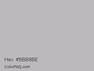 Hex #bbb8be Color is a light violet color and the nearest color is Gray X11 Gray #bebebe. Hex code #bbb8be and RGB value is rgb(187,184,190). In RGB color space, this color is composed of 73% red, 72% green, 75% blue, In CMYK color space, this color is composed of 2% cyan, 3% magenta, 0% yellow , 25% black , In HSL color space, this color has a hue angle of 270° , 4% saturation and 73% lightness.