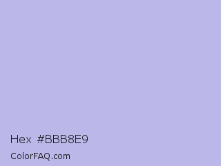 Hex #bbb8e9 Color is a very light indigo color and the nearest color is Lavender Gray #bdbbd7. Hex code #bbb8e9 and RGB value is rgb(187,184,233). In RGB color space, this color is composed of 73% red, 72% green, 91% blue, In CMYK color space, this color is composed of 20% cyan, 21% magenta, 0% yellow , 9% black , In HSL color space, this color has a hue angle of 244° , 53% saturation and 82% lightness.