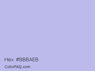 Hex #bbbaeb Color is a very light indigo color and the nearest color is Perano #a9bef2. Hex code #bbbaeb and RGB value is rgb(187,186,235). In RGB color space, this color is composed of 73% red, 73% green, 92% blue, In CMYK color space, this color is composed of 20% cyan, 21% magenta, 0% yellow , 8% black , In HSL color space, this color has a hue angle of 241° , 55% saturation and 83% lightness.