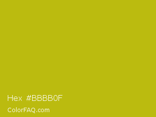 Hex #bbbb0f Color is a normal yellow color and the nearest color is La Rioja #b3c110. Hex code #bbbb0f and RGB value is rgb(187,187,15). In RGB color space, this color is composed of 73% red, 73% green, 6% blue, In CMYK color space, this color is composed of 0% cyan, 0% magenta, 92% yellow , 27% black , In HSL color space, this color has a hue angle of 60° , 85% saturation and 40% lightness.