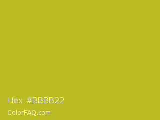 Hex #bbbb22 Color is a normal yellow color and the nearest color is Acid Green #b0bf1a. Hex code #bbbb22 and RGB value is rgb(187,187,34). In RGB color space, this color is composed of 73% red, 73% green, 13% blue, In CMYK color space, this color is composed of 0% cyan, 0% magenta, 82% yellow , 27% black , In HSL color space, this color has a hue angle of 60° , 69% saturation and 43% lightness.