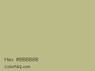 Hex #bbbb88 Color is a light yellow color and the nearest color is Sage #bcb88a. Hex code #bbbb88 and RGB value is rgb(187,187,136). In RGB color space, this color is composed of 73% red, 73% green, 53% blue, In CMYK color space, this color is composed of 0% cyan, 0% magenta, 27% yellow , 27% black , In HSL color space, this color has a hue angle of 60° , 27% saturation and 63% lightness.