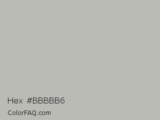 Hex #bbbbb6 Color is a light yellow color and the nearest color is Pink Swan #beb5b7. Hex code #bbbbb6 and RGB value is rgb(187,187,182). In RGB color space, this color is composed of 73% red, 73% green, 71% blue, In CMYK color space, this color is composed of 0% cyan, 0% magenta, 3% yellow , 27% black , In HSL color space, this color has a hue angle of 60° , 4% saturation and 72% lightness.