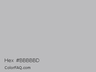 Hex #bbbbbd Color is a light blue color and the nearest color is Gray X11 Gray #bebebe. Hex code #bbbbbd and RGB value is rgb(187,187,189). In RGB color space, this color is composed of 73% red, 73% green, 74% blue, In CMYK color space, this color is composed of 1% cyan, 1% magenta, 0% yellow , 26% black , In HSL color space, this color has a hue angle of 240° , 1% saturation and 74% lightness.