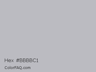 Hex #bbbbc1 Color is a light blue color and the nearest color is Gray X11 Gray #bebebe. Hex code #bbbbc1 and RGB value is rgb(187,187,193). In RGB color space, this color is composed of 73% red, 73% green, 76% blue, In CMYK color space, this color is composed of 3% cyan, 3% magenta, 0% yellow , 24% black , In HSL color space, this color has a hue angle of 240° , 5% saturation and 75% lightness.