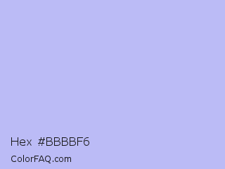 Hex #bbbbf6 Color is a very light blue color and the nearest color is Melrose #c7c1ff. Hex code #bbbbf6 and RGB value is rgb(187,187,246). In RGB color space, this color is composed of 73% red, 73% green, 96% blue, In CMYK color space, this color is composed of 24% cyan, 24% magenta, 0% yellow , 4% black , In HSL color space, this color has a hue angle of 240° , 77% saturation and 85% lightness.