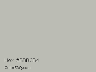Hex #bbbcb4 Color is a light yellow color and the nearest color is Green Spring #b8c1b1. Hex code #bbbcb4 and RGB value is rgb(187,188,180). In RGB color space, this color is composed of 73% red, 74% green, 71% blue, In CMYK color space, this color is composed of 1% cyan, 0% magenta, 4% yellow , 26% black , In HSL color space, this color has a hue angle of 68° , 6% saturation and 72% lightness.