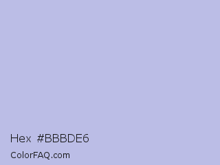 Hex #bbbde6 Color is a very light blue color and the nearest color is Blue Haze #bfbed8. Hex code #bbbde6 and RGB value is rgb(187,189,230). In RGB color space, this color is composed of 73% red, 74% green, 90% blue, In CMYK color space, this color is composed of 19% cyan, 18% magenta, 0% yellow , 10% black , In HSL color space, this color has a hue angle of 237° , 46% saturation and 82% lightness.