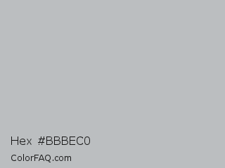 Hex #bbbec0 Color is a light blue color and the nearest color is Gray X11 Gray #bebebe. Hex code #bbbec0 and RGB value is rgb(187,190,192). In RGB color space, this color is composed of 73% red, 75% green, 75% blue, In CMYK color space, this color is composed of 3% cyan, 1% magenta, 0% yellow , 25% black , In HSL color space, this color has a hue angle of 204° , 4% saturation and 74% lightness.