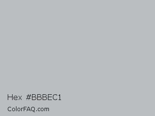 Hex #bbbec1 Color is a light blue color and the nearest color is Gray X11 Gray #bebebe. Hex code #bbbec1 and RGB value is rgb(187,190,193). In RGB color space, this color is composed of 73% red, 75% green, 76% blue, In CMYK color space, this color is composed of 3% cyan, 2% magenta, 0% yellow , 24% black , In HSL color space, this color has a hue angle of 210° , 5% saturation and 75% lightness.