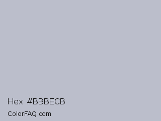 Hex #bbbecb Color is a light blue color and the nearest color is French Gray #bdbdc6. Hex code #bbbecb and RGB value is rgb(187,190,203). In RGB color space, this color is composed of 73% red, 75% green, 80% blue, In CMYK color space, this color is composed of 8% cyan, 6% magenta, 0% yellow , 20% black , In HSL color space, this color has a hue angle of 229° , 13% saturation and 76% lightness.